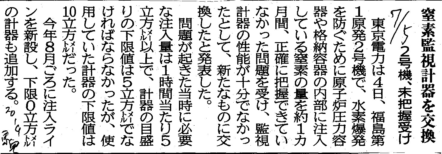 [2019_07_05_04]窒素監視計器を交換 2号機、未把握受け(東奥日報2019年7月5日)