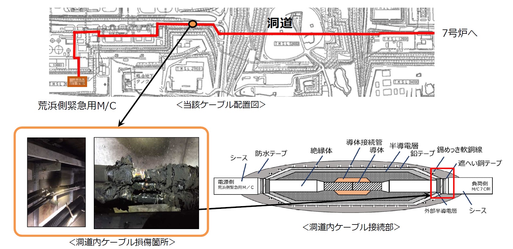 ○発煙の原因を調査したところ、ケーブル洞道内の7号機用ケーブル接続部に焦げ痕が確認されたことから柏崎市消防が火災と判断