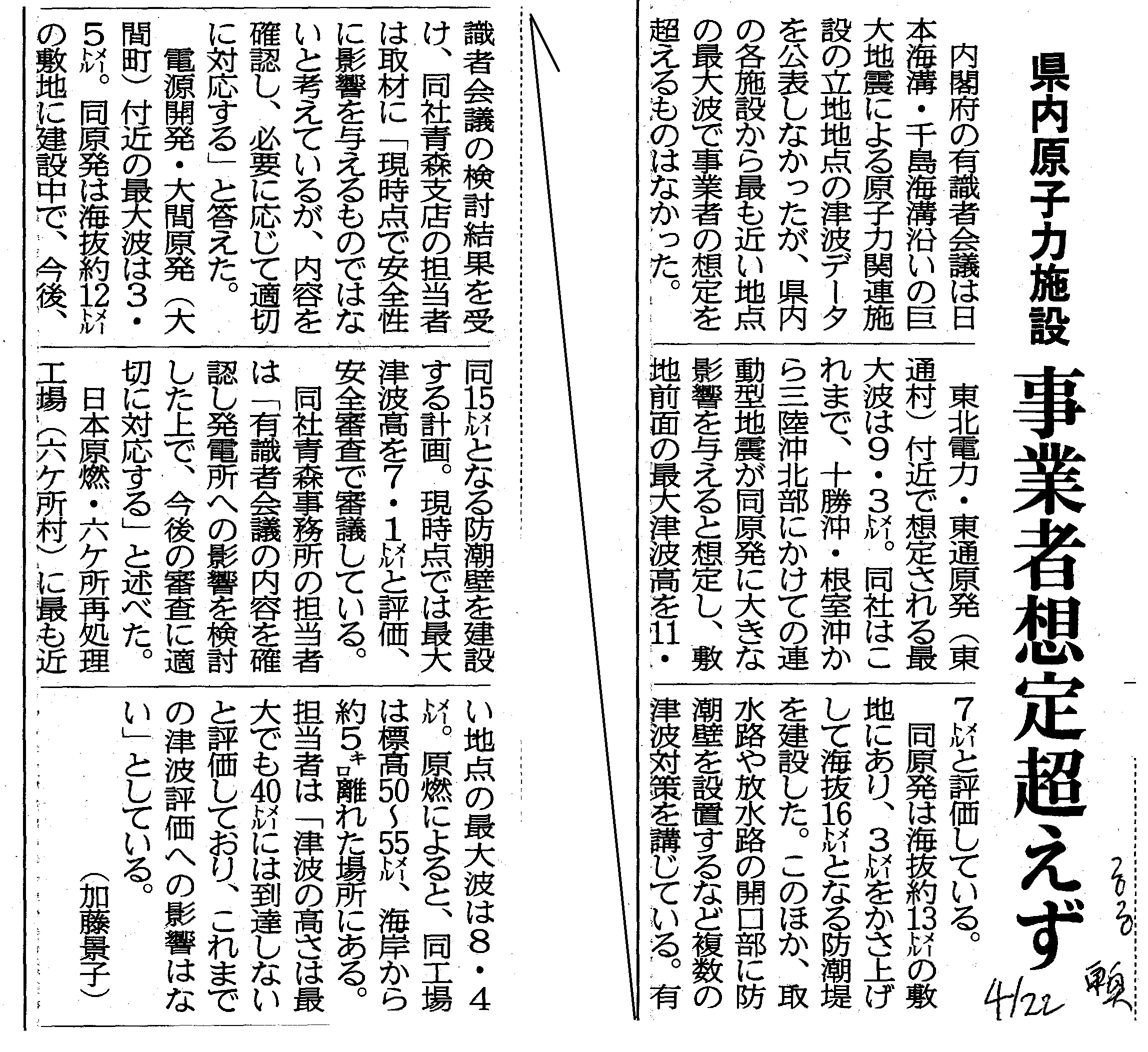 | [2020_04_22_05]県内原子力施設 事業者想定超えず(東奥日報2020年4月22日) |
