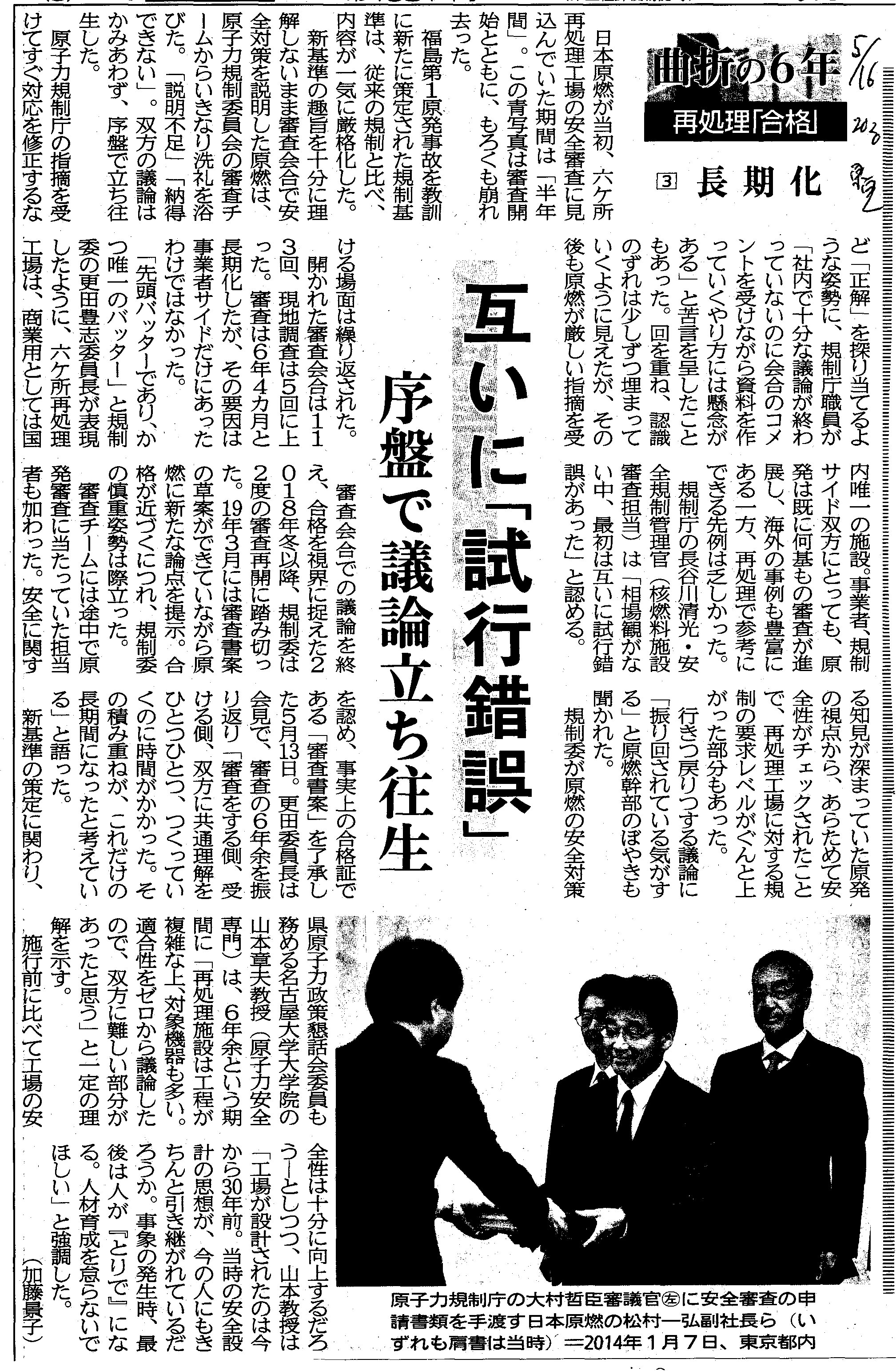 | [2020_05_16_01]曲折の6年 再処理「合格」 (3)長期化 互いに「試行錯誤」 序盤で議論立ち往生(東奥日報2020年5月16日) |