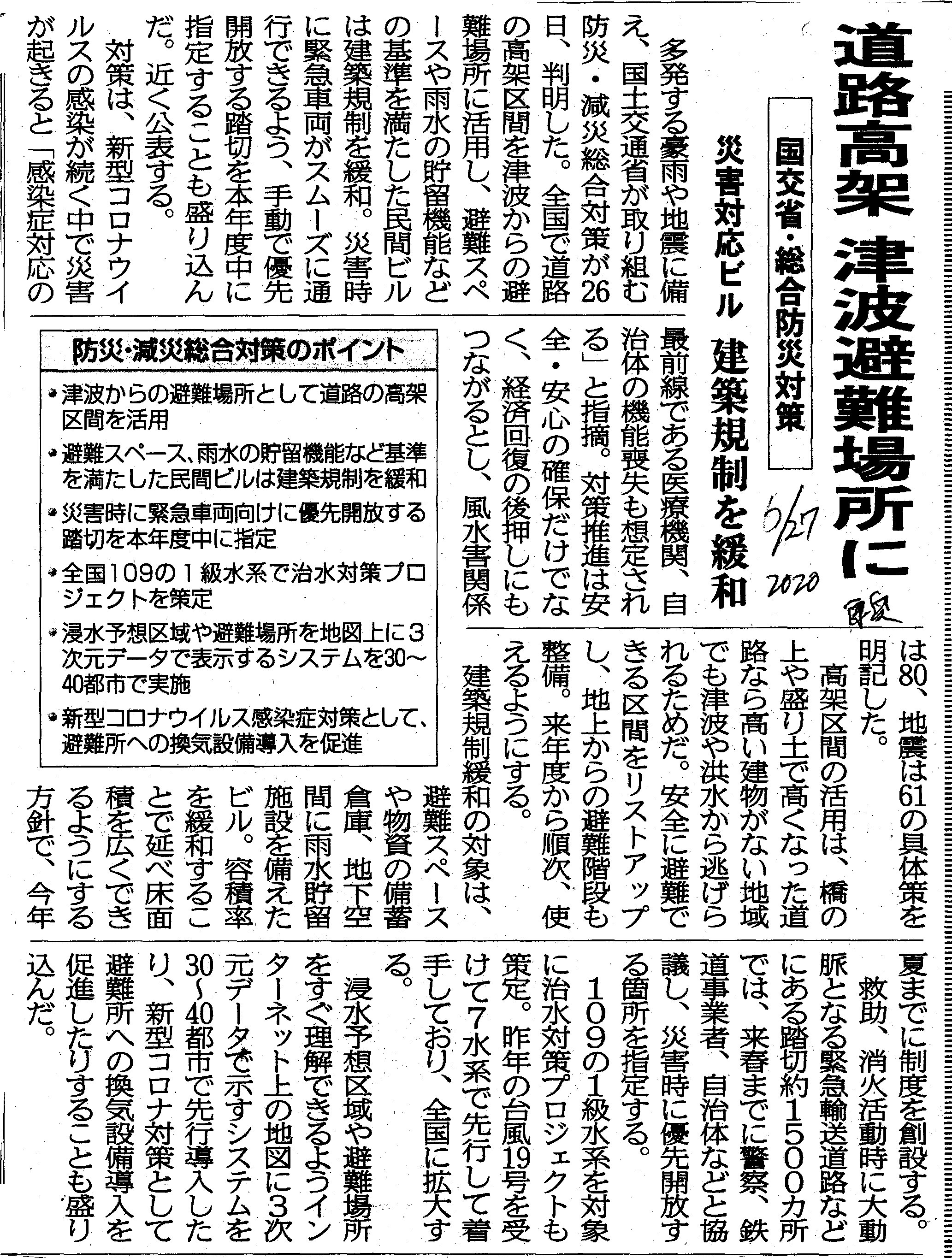 [2020_06_27_03]道路高架 津波避難場所に 国交省・総合防災対策 災害対応ビル 建築規制を緩和(東奥日報2020年6月27日)