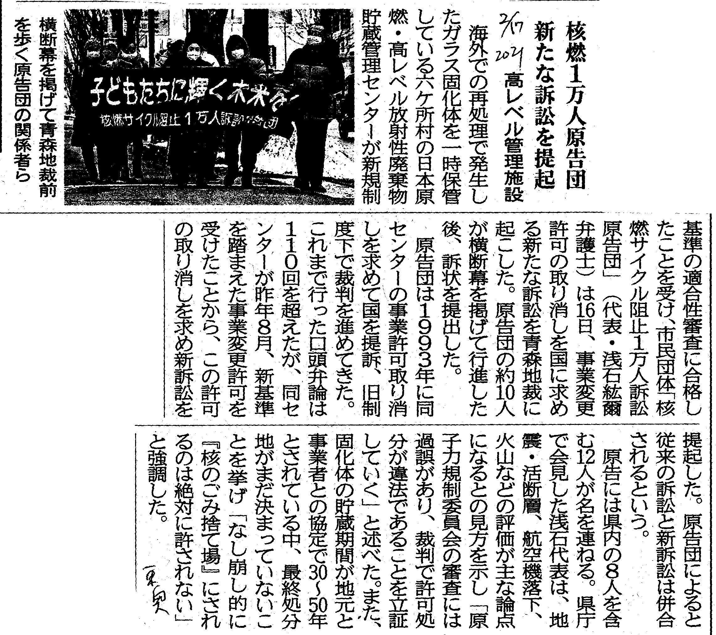 | [2021_02_17_04]核燃1万人原告団 新たな訴訟を提起 高レベル管理施設(東奥日報2021年2月17日) |