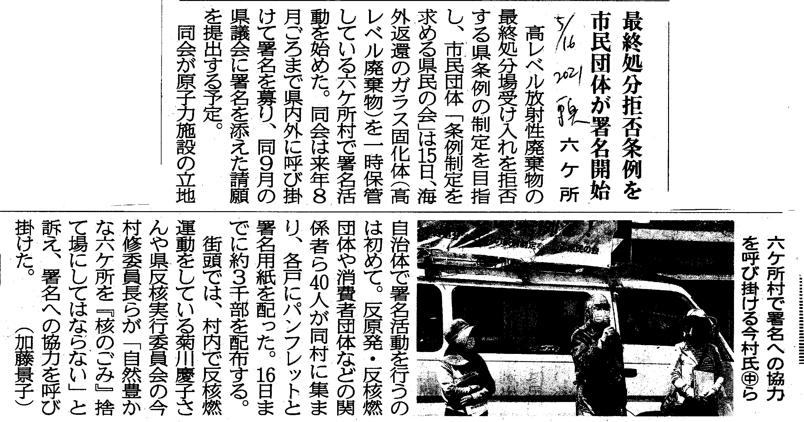 [2021_05_16_03]最終処分拒否条例を市民団体が署名開始 六ケ所(東奥日報2021年5月16日)