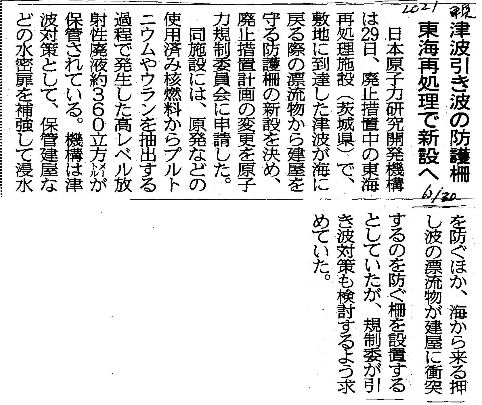 | [2021_06_30_07]津波引き波の防護柵 東海再処理で新設へ(東奥日報2021年6月30日) |