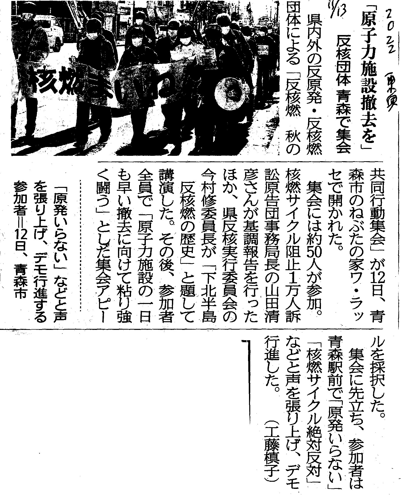 [2022_11_13_01]反核団体 青森で集会 「原子力施設撤去を」(東奥日報2022年11月13日)