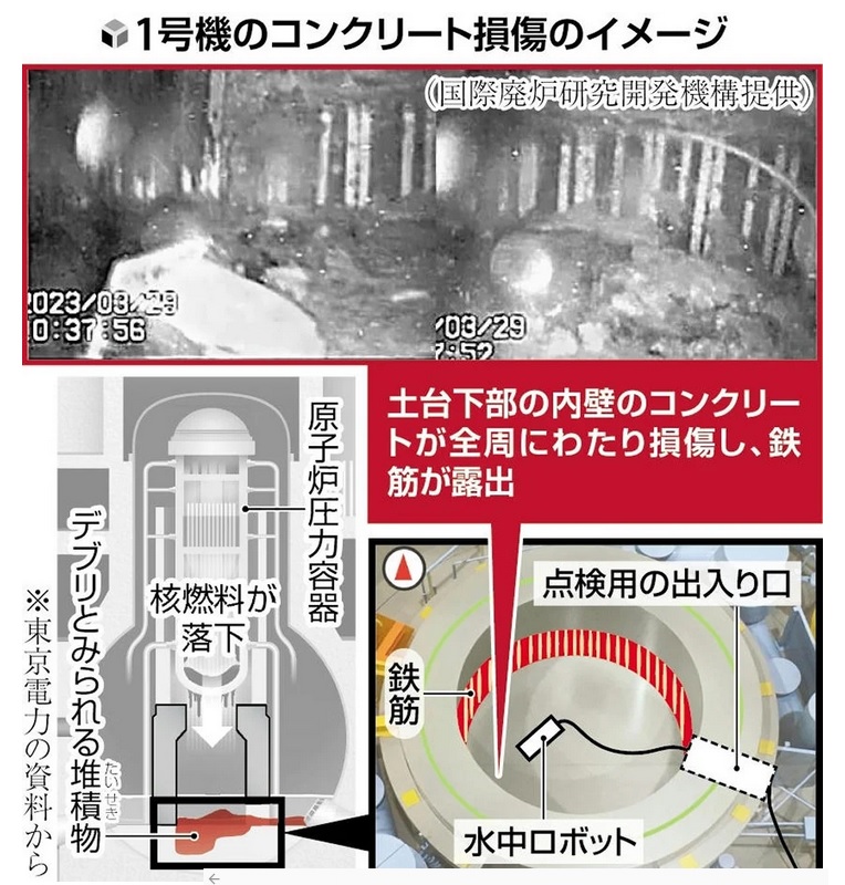 | [2023_04_14_05]福島第一1号機の原子炉土台、全周にわたり損傷…水中ロボット撮影の映像で判明 (読売新聞2023年4月14日) |