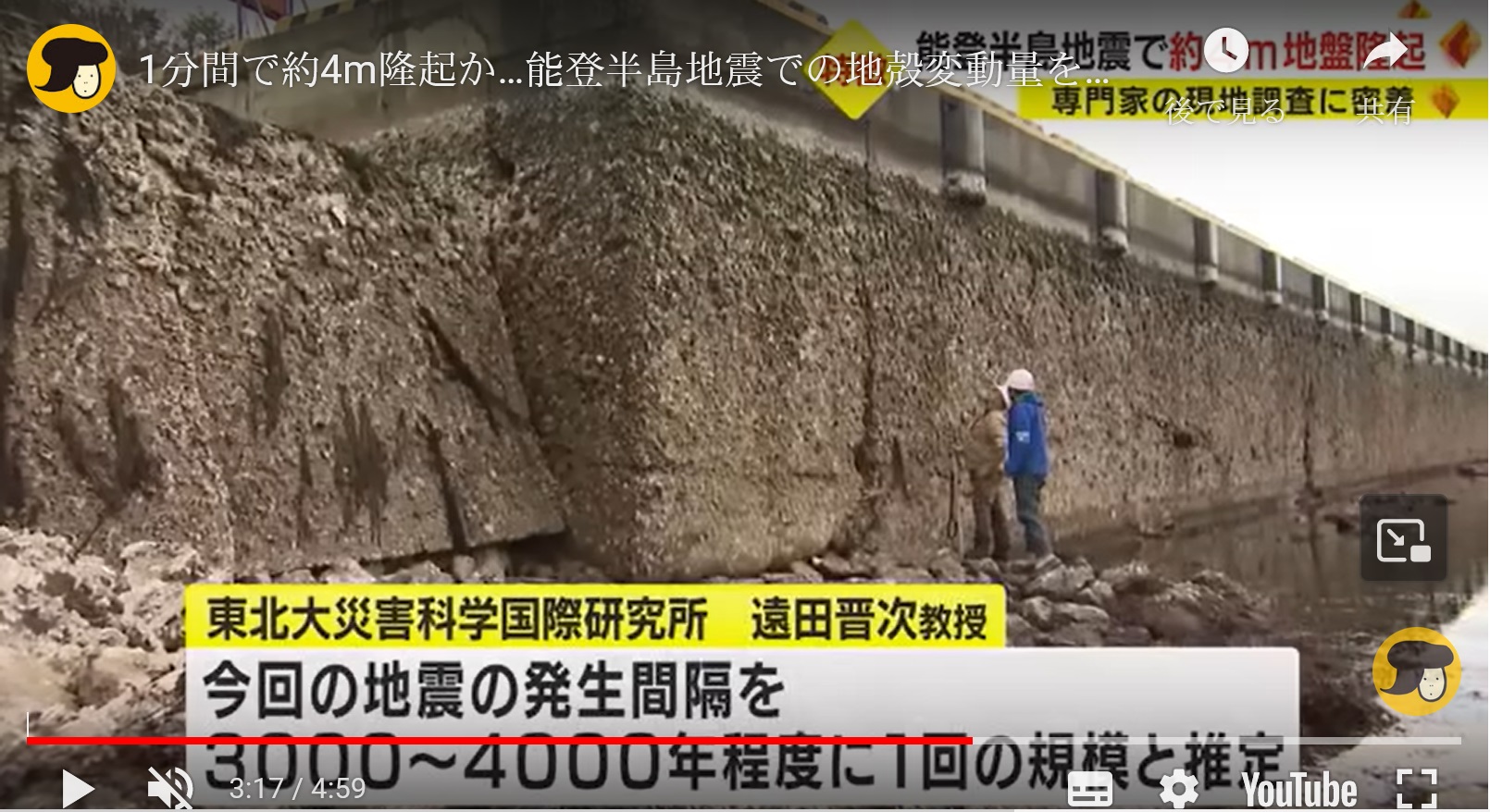 | [2024_01_15_04]1分間で約4m隆起か…能登半島地震での地殻変動量を大学准教授が調査 港の復興「東日本の時以上に大変」 (石川テレビ2024年1月15日) |