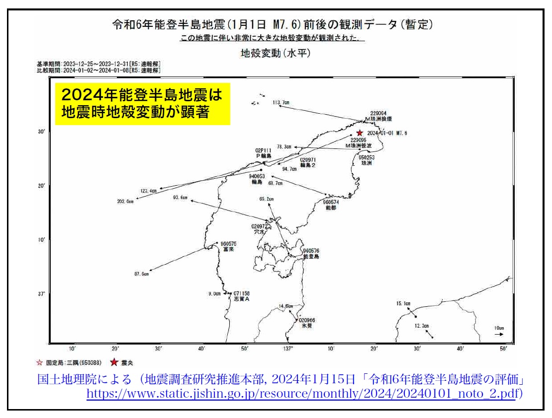 国土地理院による(地震調査研究推進本部, 2024年1月15日「令和6年能登半島地震の評価」)