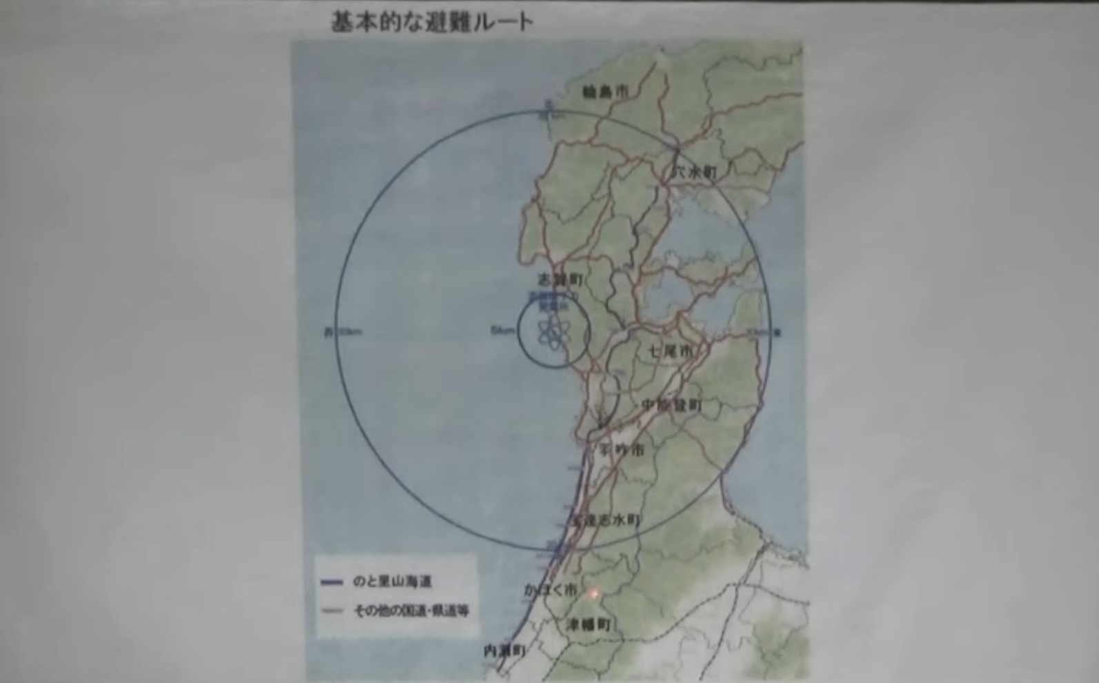 北に逃げた人たちは、どこ行くかって、この先何もありませんから、地面が、なくなりますので、能登半島の先端まで逃げるか。というと実はここに空港があるから空港から出して出来るよまたここにたくさん港がありますから、港から逃げることができますというのが、触れ込みです。