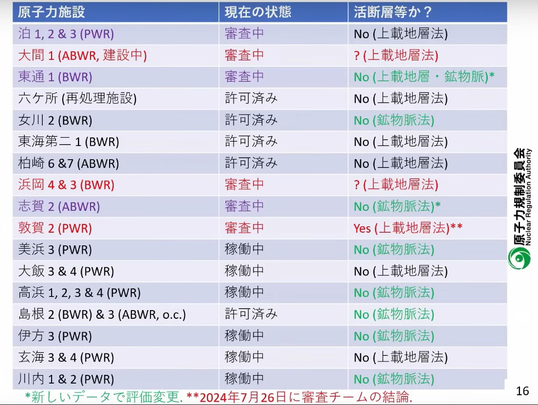 | [2024_11_18_15]各原子力施設_現在の状態_活断層等の判定表(日本記者クラブ_石渡明(前原子力規制委員会委員)_会見2024年11月18日) |