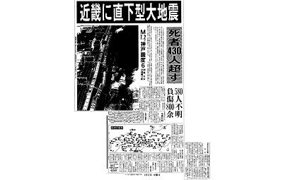 | 近畿に直下型大地震 死者430人超す 580人不明 負傷800余 M7.2、神戸震度6 | 毎日新聞 | 1995/01/17 |