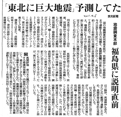 | 列島覆う大地震の危険性 意外に怖い確率1% 津波怖い海溝型 | 読売新聞 | 2004/06/18 |