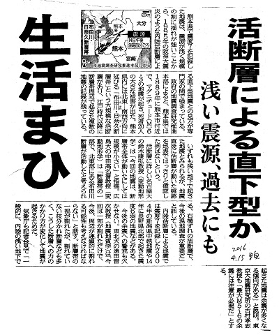 | 熊本地震 断層に大地震跡 過去1万5000年、4〜5回発生か 日奈久北部 | 毎日新聞 | 2017/04/17 |