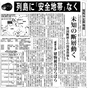 | 福岡沖玄海地震 列島に「安全地帯」なく 未知の活断層動く 警固断層との関連指摘も | 毎日新聞 | 2005/03/21 |