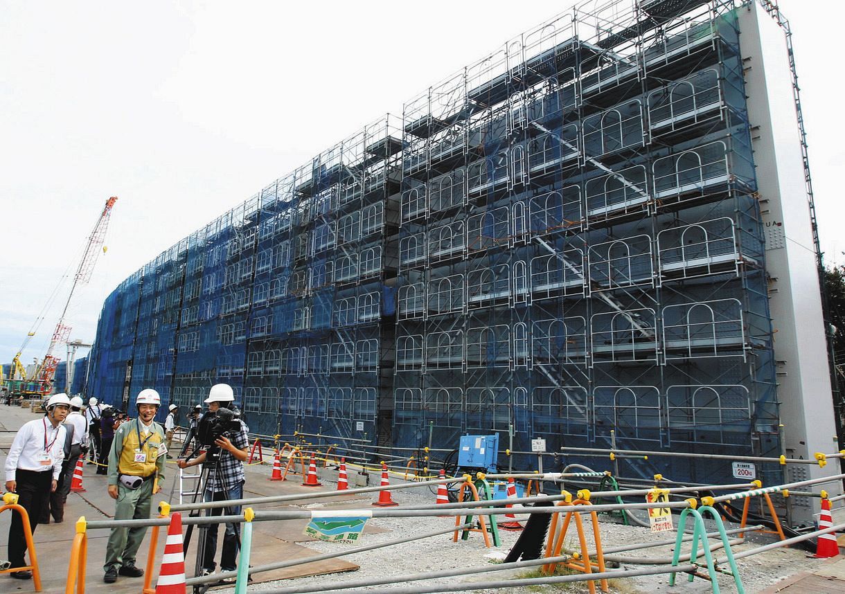 台風22号が29日に静岡県沖などを通過した際、4号機の原子炉建屋と海水熱交換器建屋を地下で結ぶダクトに雨水約600リットルが流入し、発覚した。 中部電によると、雨水は工事のためシートで覆っていた作業スペースの入り口から地下の同スペースに流れ込み、ダクトには、同スペースとの間に設けられた壁にある電源ケーブル用の穴1カ所から入った。周辺7カ所も調査対象から漏れていたという。 |