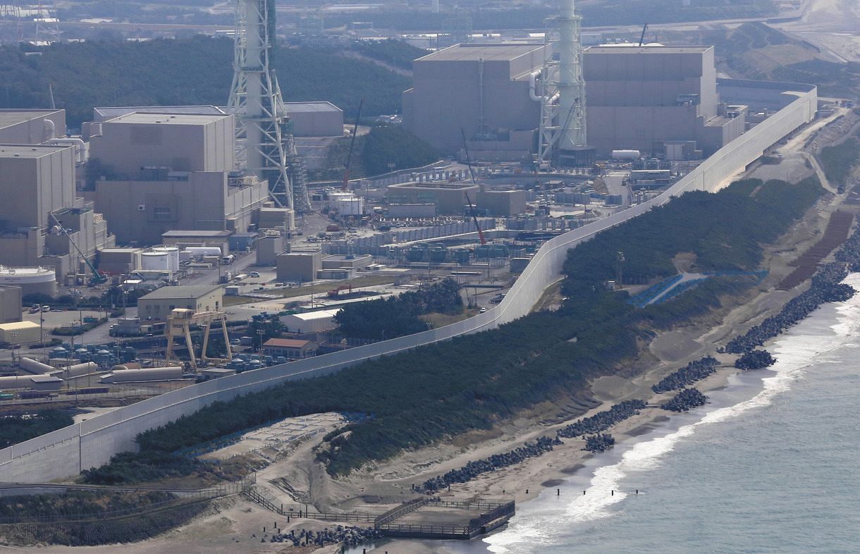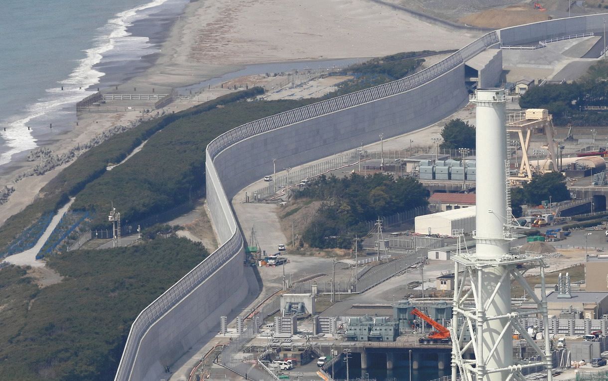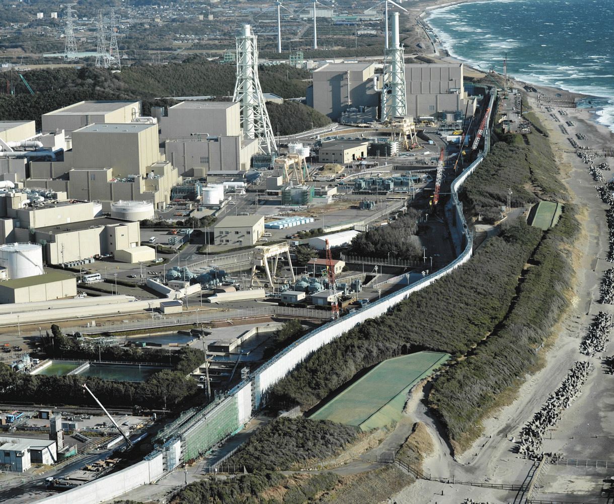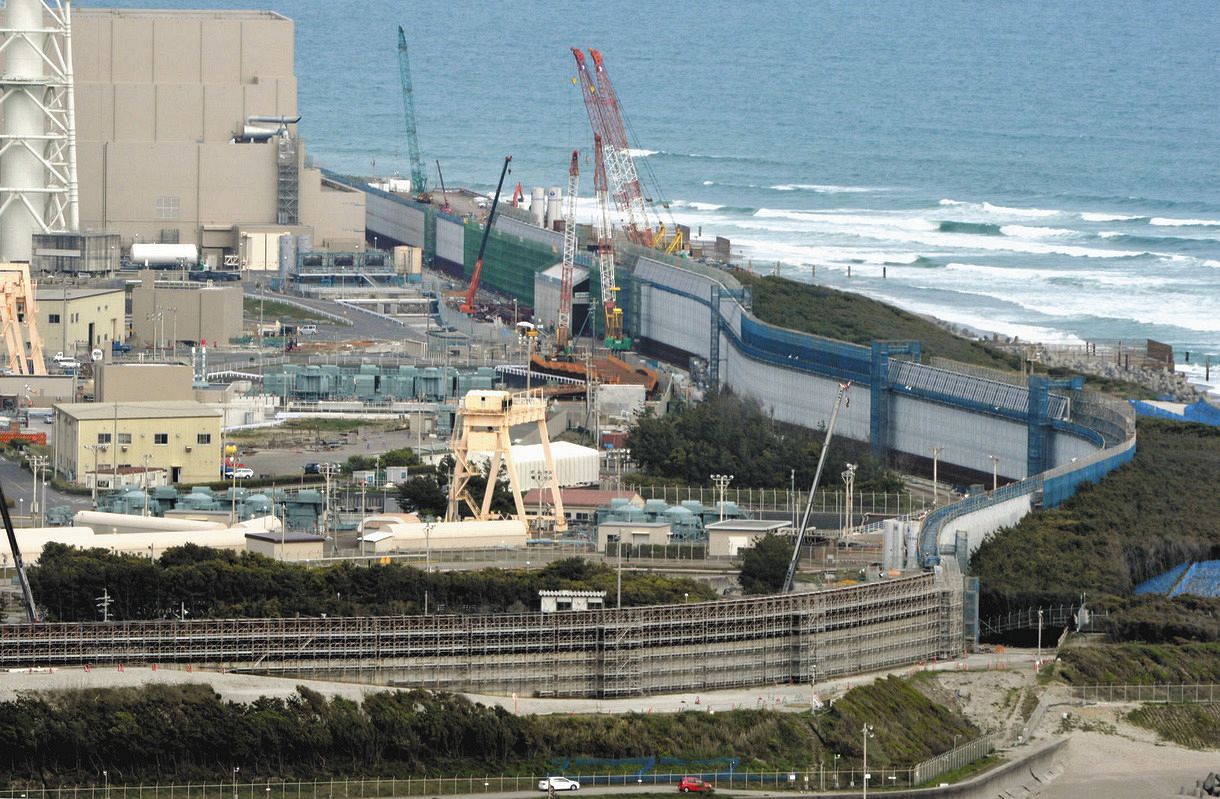 基準津波(想定される津波の高さ)を21・1メートルとし、海抜22メートルの高さの防潮堤の設置工事が続いている。