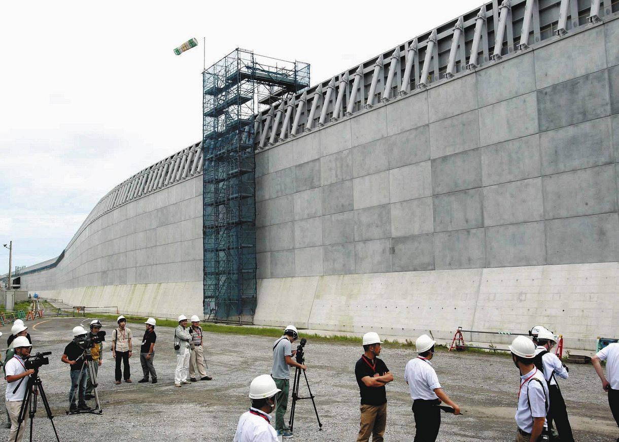 中部電力が南海トラフ巨大地震の津波対策として浜岡原発(静岡県御前崎市)に建設していた防潮堤が三十一日、完成した。壁部分は高さ海抜二十二メートル、全長一・六キロで、東西の両端を盛り土で補強した。壁は原発の正面から襲う津波を、盛り土は回り込む海水の流入を防ぐ。