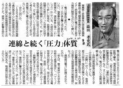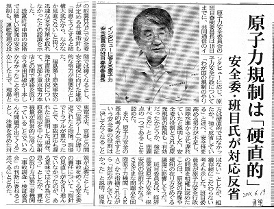 | 原子力規制は「硬直的」 安全委・班目氏が対応反省 | 東奥日報 | 2011/06/19 |
