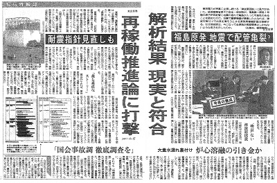 | 地震で配管亀裂? 解析結果 現実と符合 大量水漏れ裏付け | 東京新聞 | 2011/12/15 |
