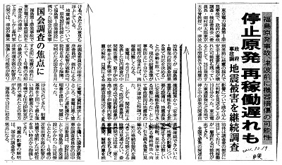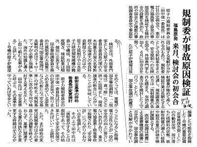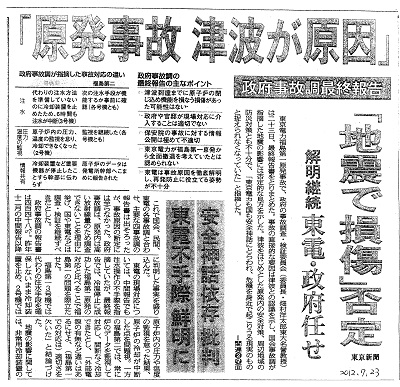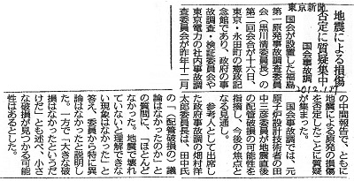 | 地震による損傷否定に質疑集中 国会事故調 | 東京新聞 | 2012/01/17 |