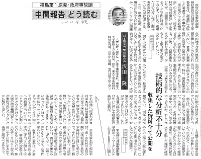 (26)福島第1原発・政府事故調 中間報告どう読む 日本原子力学会副会長