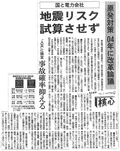 | 原発対策 04年に改革論議 国と電力会社 地震リスク試算させず | 中日新聞 | 2012/01/22 |