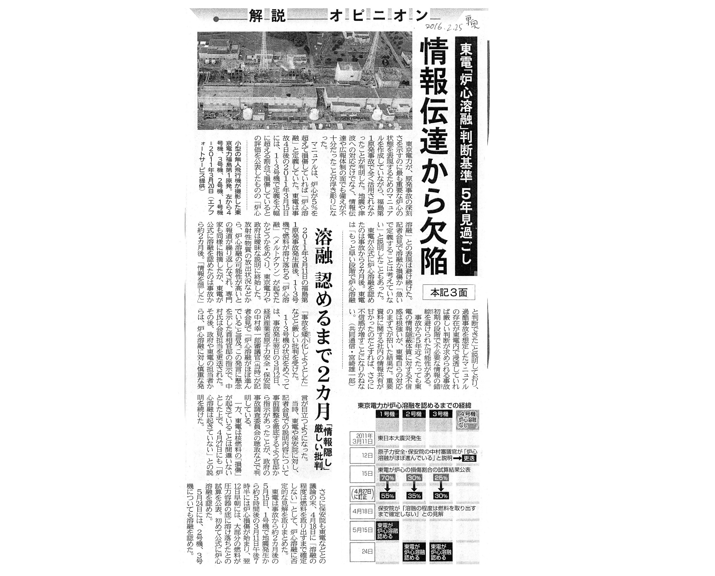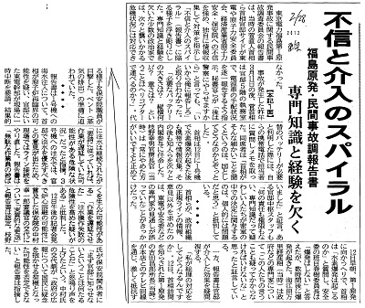 | 不信と介入のスパイラル 福島原発・民間事故調報告書 専門知識と経験を欠く | 東奥日報 | 2012/02/28 |