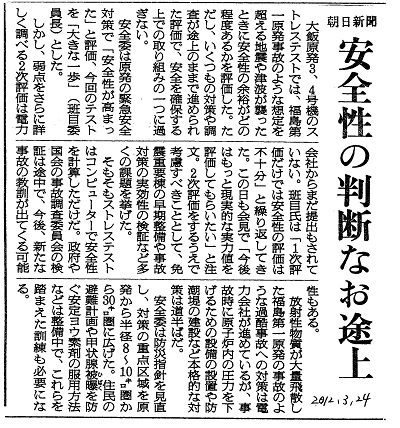 | 安全性の判断なお途上 | 朝日新聞 | 2012/03/24 |