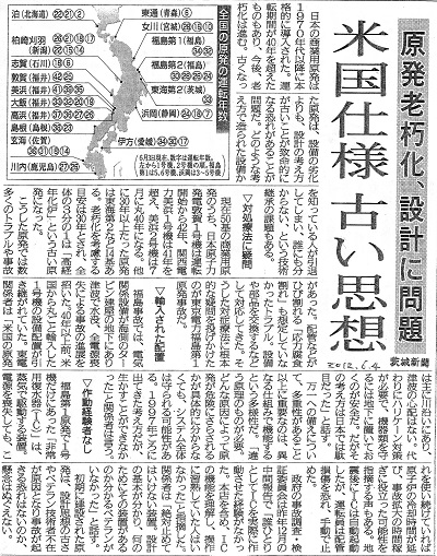 | 原発老朽化、設計に問題 米国仕様 古い思想 | 茨城新聞 | 2012/06/04 |