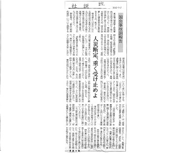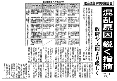 | 国会原発事故調報告書政府や民間より厳しく | 東奥日報 | 2012/07/06 |