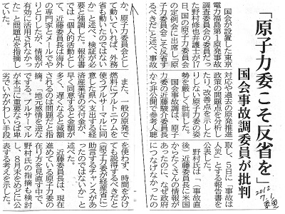 | <原発事故の教訓>形式的な議論、国会の怠慢 | 河北新報 | 2018/12/31 |