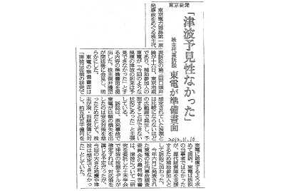 | 「事故は、やりようによっては防げた」_刑事裁判傍聴記:第16回公判(添田孝史) | 福島原発告訴団 | 2018/06/15 |