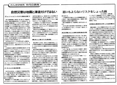 | コラム 柳田邦男 原子力学会が異例の声明 専門家は責任を果たせ | 東奥日報 | 2011/08/05 |