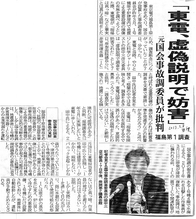 (36)●2012/3 国会事故調調査時(田中光彦氏)に[東電、虚偽説明で妨害]