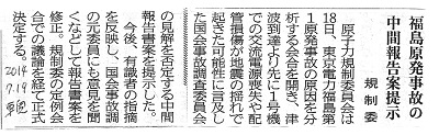(18)津波対策可能だった 住民への情報に不備 原発事故調 中間報告の柱に