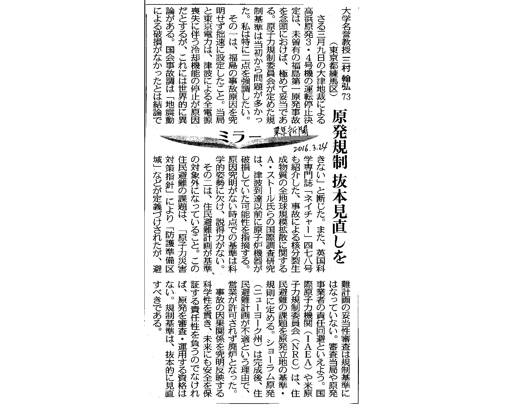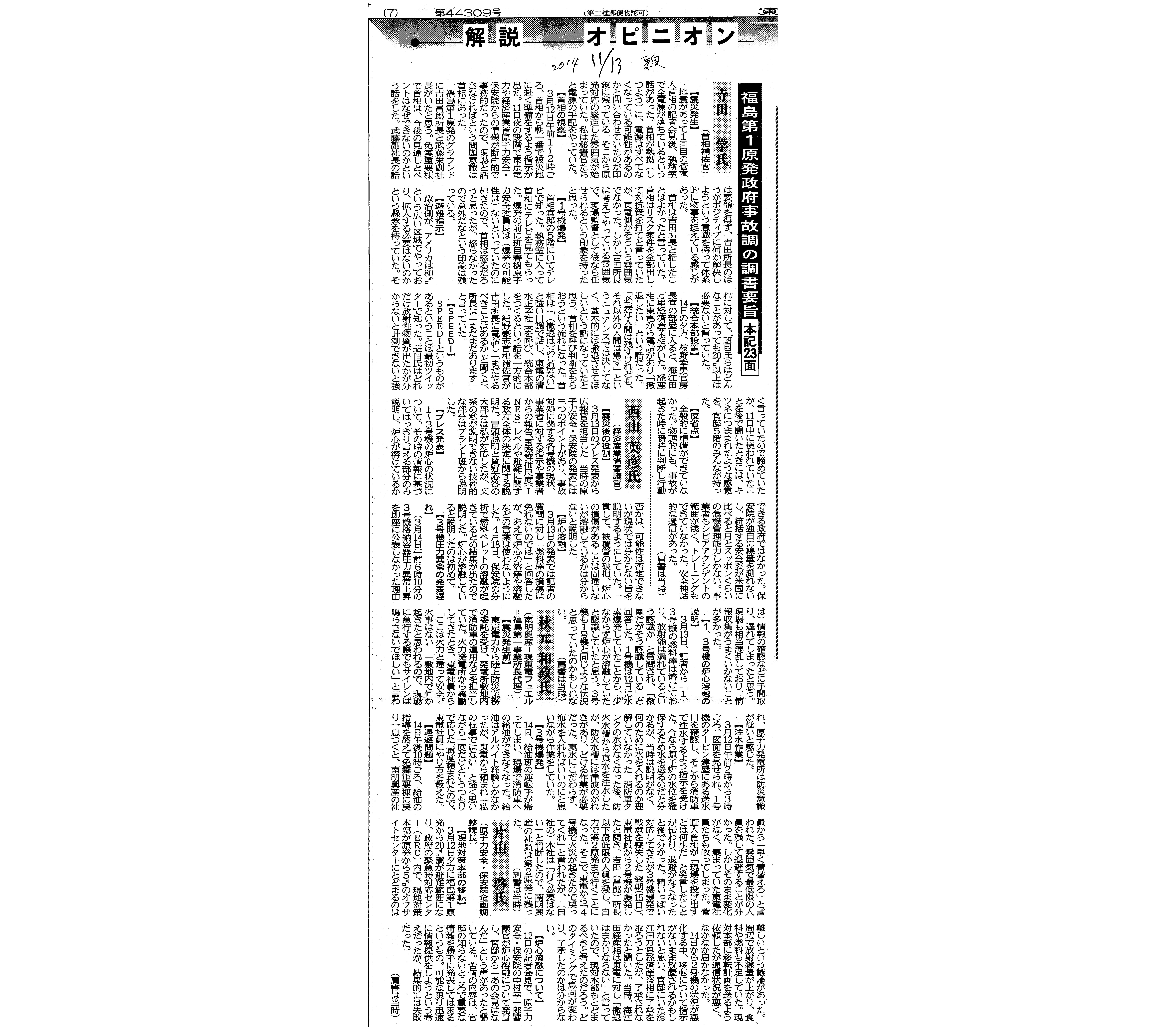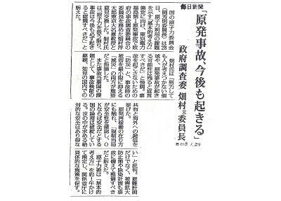 | 福島第1原発・政府事故調 中間報告どう読む 日本原子力学会副会長 | 東奥日報 | 2011/12/28 |