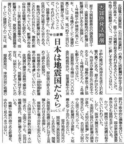 (前略)「特重施設」建設遅れ 多々ある問題を整理する…山崎久隆(たんぽぽ舎副代表)氏の原稿末尾に補足した☆5月19日(日)読売新聞朝刊17面「サイエンス Report」本文の一部を紹介します。(後略)