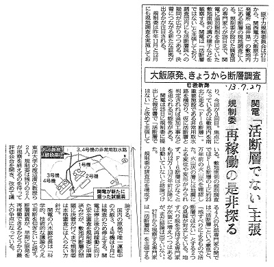 | 大飯原発、きょうから断層調査 規制委 再稼働の是非探る | 日経新聞 | 2013/07/27 |
