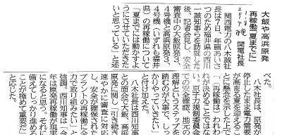 | 大飯や高浜原発 再稼働「夏までに」 関電社長 | 東奥日報 | 2014/01/08 |