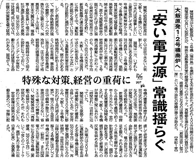 | 大飯原発1・2号機廃炉へ 「安い電力源」常識揺らぐ 特殊な対策、経営の重荷に | 東奥日報 | 2017/10/17 |