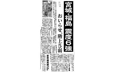 | ( 89 ) 河北新報 3/18 震度6強の震源、昨年2月と近接 専門家「エネルギーは2倍」 |