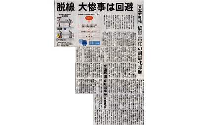 | ( 88 ) 東奥日報 3/18 脱線 大惨事は回避 東北新幹線 橋脚・電柱の耐震化課題 |