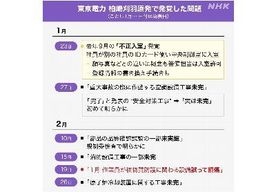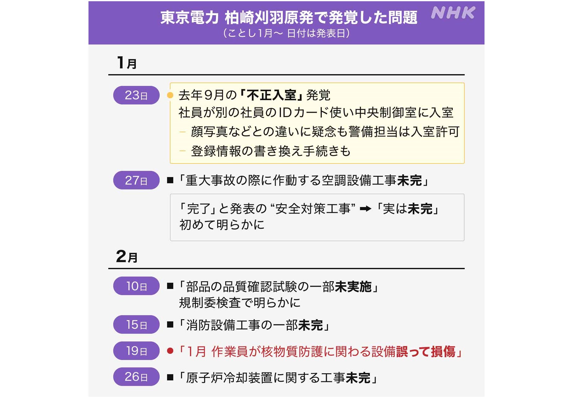 ○東京電力 柏崎刈羽原発で発覚した問題(ことし1月〜日付は発表日) |