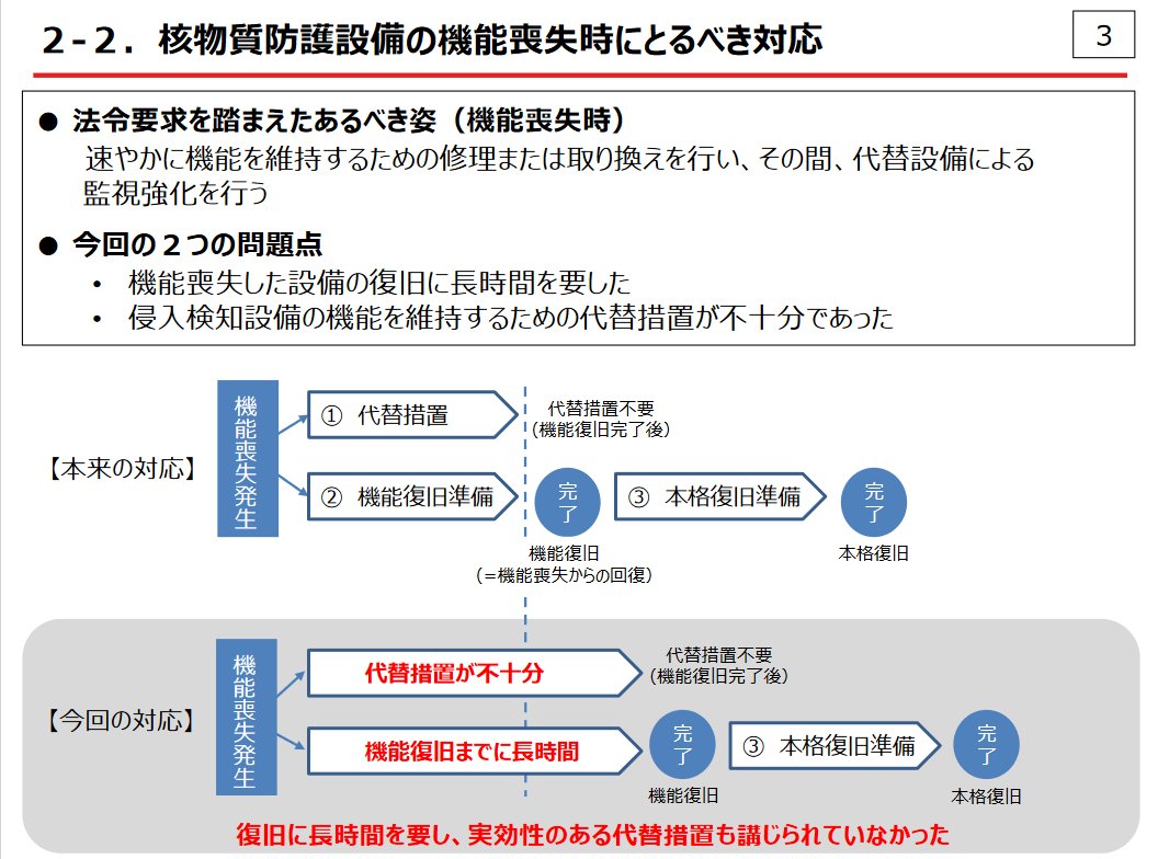 ○核物質防護設備の機能喪失時にとるべき対応 |