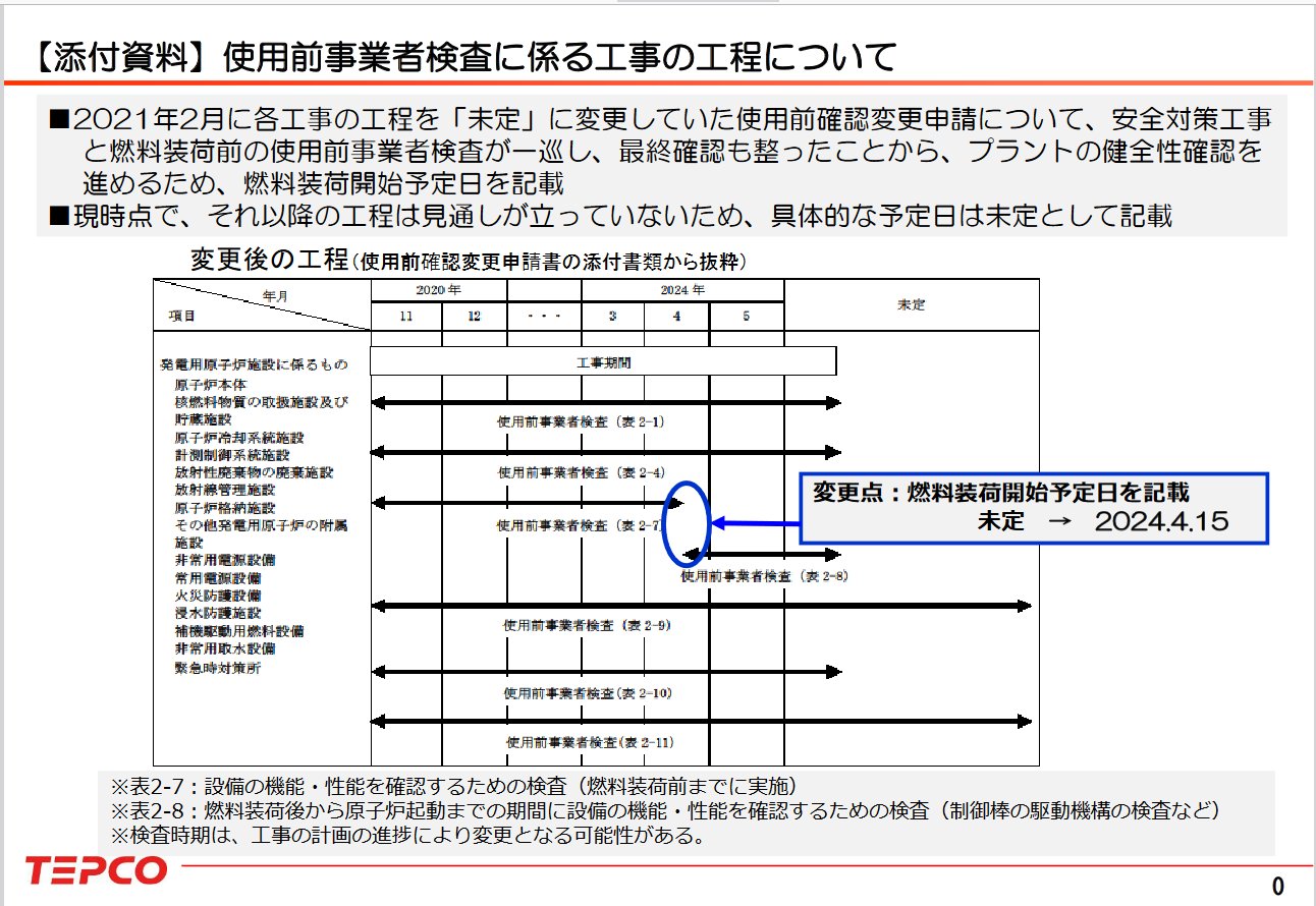 ○【添付資料】使用前事業者検査に係る工事の工程について |