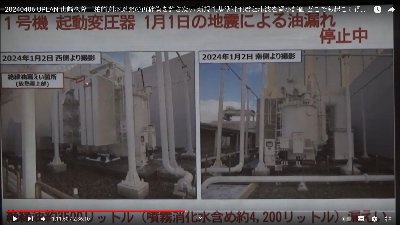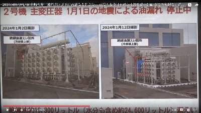 ○2号機 主変圧器 1月1日の地震による油漏れ 停止中 |
