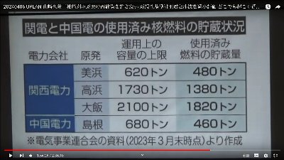 ○関電と中国電の使用済み核燃料の貯蔵状況(西日本新聞 2023/08/03) |