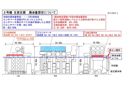 これは1号機と2号機の変圧器ですが。最大で1万9800リットル、漏れた時に消火剤も起動していたので、消火剤も含めて2万4600リットルが漏洩をしている。そういう状況になりました。