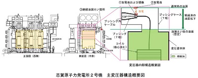 ・同じ志賀町ではありますが、今回の地震で観測した地震動は、志賀原子力発電所で399ガル、志賀町富来地区の地震観測計で2,828ガルでした。 (2)「志賀原発の変圧器、最も強い揺れに耐える「 クラスC 」でも壊れる」との見出し・「変圧器のトラブルは北陸電の主張や立場を揺るがしかねない」との記載について ・当社が申請している地震動が1,000ガルであるのに対し、変圧器は500ガルまでしか耐えられないということで、あたかも当社が耐震基準を満たしていない変圧器を設置しているかのような内容ですが、当社が申請している地震動と変圧器に求められる耐震性は全く別物です。 ・原子力発電所は耐震設計審査指針に基づき、各設備の重要度に応じて耐震クラスが設定されています。 ・今回損傷した変圧器は一般産業品と同等の耐震設計(耐震Cクラス)が要求されており、当然ながら、その要求を満たした変圧器を設置しています。 その耐震性として500ガル程度の揺れまで耐えられるというものです。 |