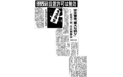 | 志賀原発 運転差し止め 金沢地裁命令 「地震の想定、過小」 商業用初 被ばく可能性認定 北陸電力「運転は継続」 | 毎日新聞 | 2006/03/24 |